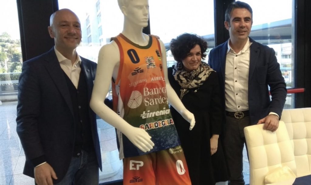 A presentare la maglia ai media l’Assessore regionale al Turismo, Artigianato e Commercio Barbara Argiolas, il presidente Stefano Sardara e Alessandro Ariu di Eye Sport, sponsor tecnico del club.