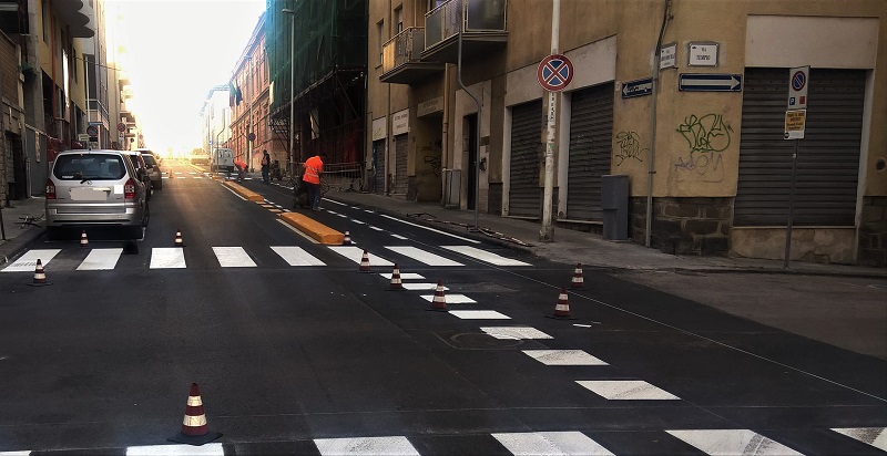 Stanno terminando in queste ore i lavori del lotto 3 delle piste ciclabili. Nella tarda serata di ieri gli operai erano al lavoro per realizzare la segnaletica orizzontale e verticale lungo il tracciato della pista che da via Asproni conduce sino a via Duca degli Abruzzi. Gli operai hanno ridisegnato anche le strisce per gli attraversamenti pedonali e gli stalli per la sosta, che non è più a pagamento ma da ora gratuita per tutti i residenti dell’intera via.