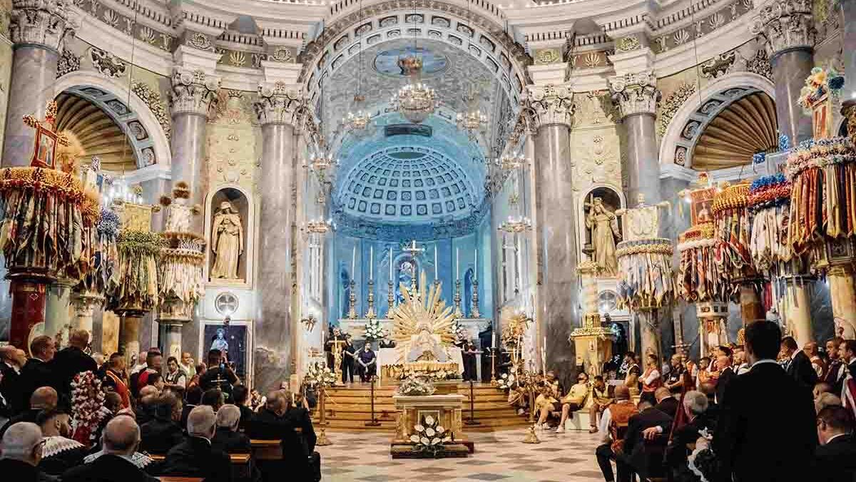 I gremi, giunti in piazza Santa Maria, faranno il loro ingresso in chiesa, in base all’ordine previsto dal cerimoniale. Le modalità sono state studiate nei minimi dettagli per evitare assembramenti. Così dentro il tempio resterà soltanto una rappresentanza, mentre gli altri gremianti assisteranno dalla piazza attraverso un maxi-schermo che trasmetterà quanto accade all’interno. Ridotta anche la rappresentanza delle autorità. Dopo il saluto del padre guardiano, sarà recitata la preghiera per la Madonna dell’Assunta e infine il vescovo impartirà la benedizione.