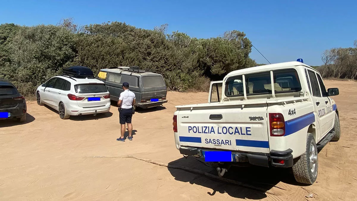 La Polizia locale intensifica i controlli su parcheggi vietati, campeggio abusivo e rischi incendi nelle aree protette di Platamona, Porto Ferro, Fiume Santo e zone limitrofe