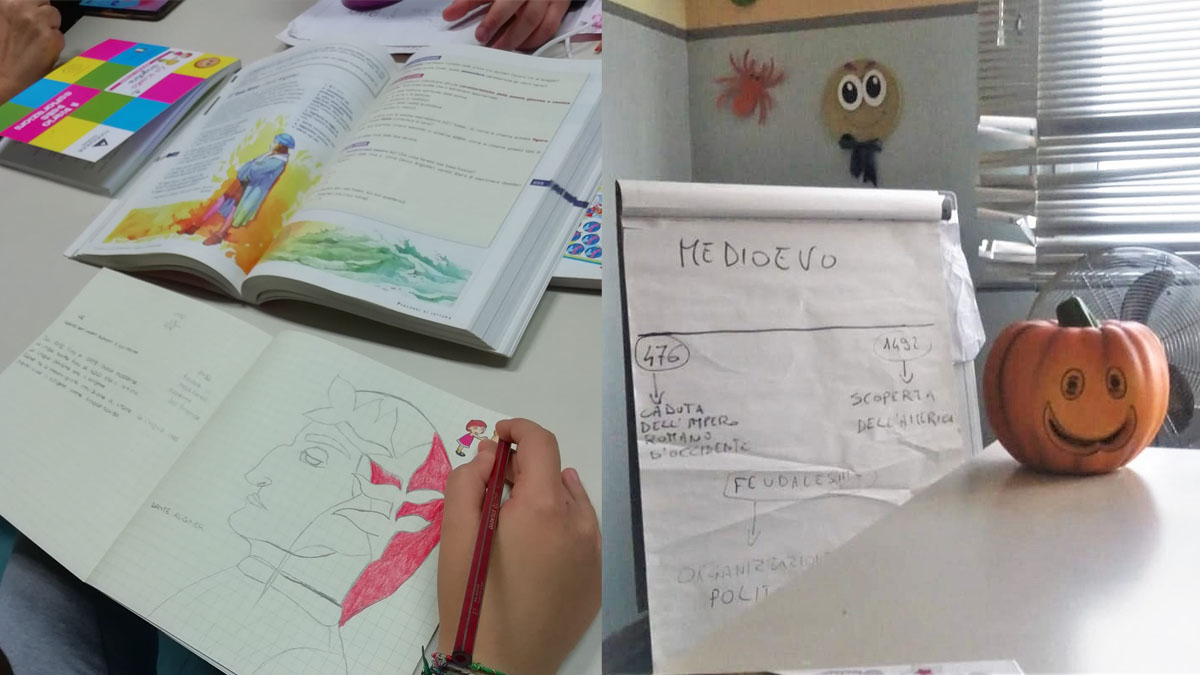 Si studia Dante e la Divina Commedia, si approfondisce la storia, si disegna, si realizzano poster tematici e si affrontano anche temi sociali, perché il ricovero in ospedale non deve tenere i ragazzi lontani dalle loro abitudini o dalla vita di tutti i giorni. Ecco perché da anni, nell’Aou di Sassari, è presente la “scuola in ospedale”, una realtà consolidata che trova un vivo apprezzamento tra i bambini e i ragazzi ricoverati nei reparti di Pediatria e di Neuropsichiatria infantile.