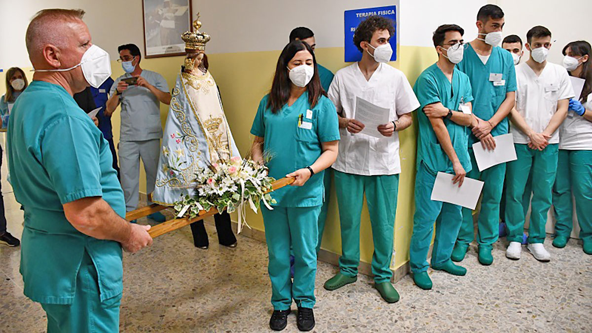 Il simulacro è stato quindi preso in consegna dai cappellani che lo hanno accompagnato per la visita all’interno dell’ospedale. A ogni reparto la statua della Vergine è stata presa “in consegna” da due infermieri o da due operatori sociosanitari che l’hanno portata dai pazienti, all’interno delle stanze di degenza.