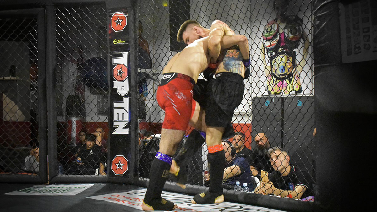 Francesco Biosin (Tarantini) e Cristiano Monti (No rules team) hanno dato dimostrazione di ottima tecnica di lotta, di calci e boxe, con il risultato di un vero e proprio spettacolo. Biosin ha costretto più volte l’avversario alla rete, controllando e bloccando più di una volta le velleità dell’avversario. A fine match è il sassarese che si aggiudica il punteggio più alto dei giudici.