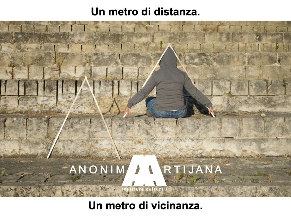 Il metro di distanza, imposto come misura di sicurezza, e che ora diventa così indispensabile per avviarci alla normalità, “abbiamo deciso di mettercelo in tasca” afferma AnonimArtijana, ideatrice e promotrice dell’iniziativa.