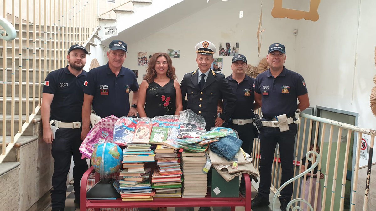 Oltre agli zainetti, sono stati regalati più di 200 libri e quattro scatoloni di abbigliamento per bambine e bambini, frutto di una donazione di alcuni parenti di un agente che hanno chiuso il negozio.