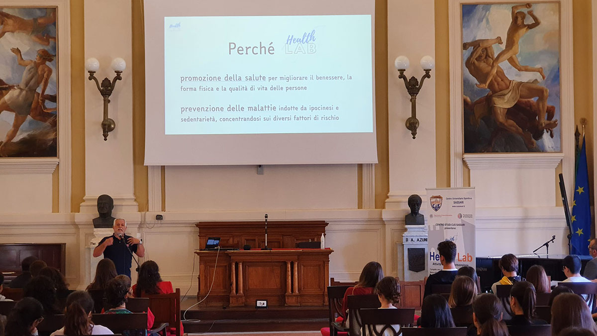 Ha fatto tappa nell’aula magna del Liceo Azuni di Sassari il progetto “Health Lab – attività motoria è prevenzione”. Organizzata dal Centro Studi del CUS Sassari, in collaborazione con la Fondazione di Sardegna e il Dipartimento di Scienze Biomediche dell’Università di Sassari, l’iniziativa è giunta al secondo di tre appuntamenti previsti con gli studenti di altrettante scuole superiori della provincia, dopo il primo incontro con gli studenti del Liceo Scientifico “Mossa” di Olbia e quello in programma con i loro colleghi del Liceo Scientifico “Marconi” di Sassari.
