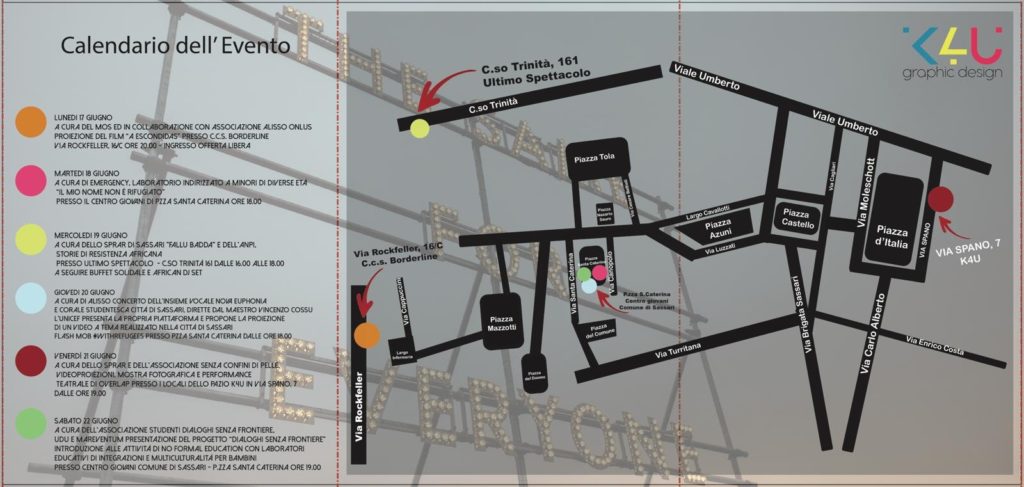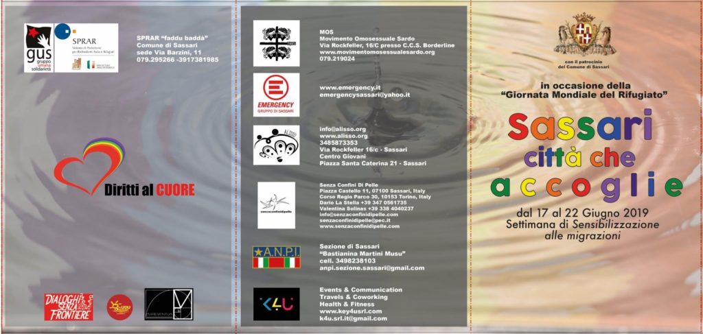 Sette giorni di eventi per sensibilizzare la cittadinanza ai temi migratori e alla condizione dei rifugiati. In occasione della Giornata mondiale del rifugiato, prende il via lunedì 17 giugno la Settimana di sensibilizzazione sulle migrazioni, organizzata dallo Sprar del Comune di Sassari, gestito da Gus (Gruppo Umana Solidarietà) in collaborazione con diverse realtà del terzo settore da sempre impegnate nell’accoglienza e nell’integrazione, fra cui Gruppo Emergency Sassari, associazione Alisso, associazione Senza Confini Di Pelle, Movimento omossessuale sardo, Anpi e Udu.