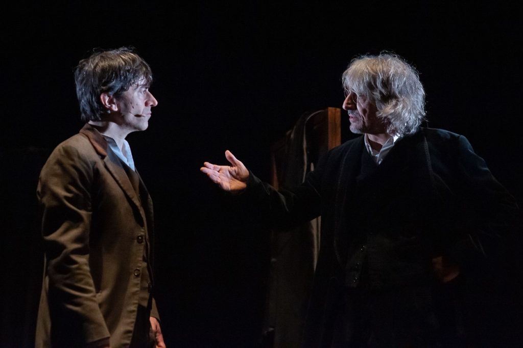 Sotto i riflettori – insieme allo stesso Sergio Rubini, Luigi Lo Cascio, che presta volto e voce a Jonathan Harker, il giovane avvocato londinese incaricato di curare le pratiche per l’acquisto di un appartamento nella capitale inglese da parte di un aristocratico della remota Transilvania e Lorenzo Lavia, Roberto Salemi, Geno Diana, Alice Bertini, protagonisti di una storia “gotica” in cui realtà e immaginazione si confondono e riaffiora l’eco di antiche leggende. La pièce racconta il difficile itinerario dell’uomo di legge, un individuo razionale avvezzo alla comodità della metropoli e alla rassicurante solidità dei codici, ma anche uno spirito sensibile e innamorato, attraverso il paesaggio selvaggio e sconosciuto dei Carpazi fin nei territori dell’incubo, evocati dalle suggestive scenografie di Gregorio Botta, che restituiscono anche la temperie dell’epoca insieme ai costumi di Chiara Aversano, mentre la trama delle emozioni è affidata alle musiche di Giuseppe Vadalá e al progetto sonoro di G.U.P. Alcaro, nonché al disegno luci di Tommaso Toscano che rivela i dettagli e sottolinea i momenti cruciali in un mondo di tenebra (produzione compagnia Nuovo Teatro diretta da Marco Balsamo).