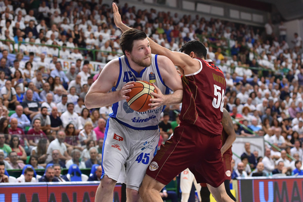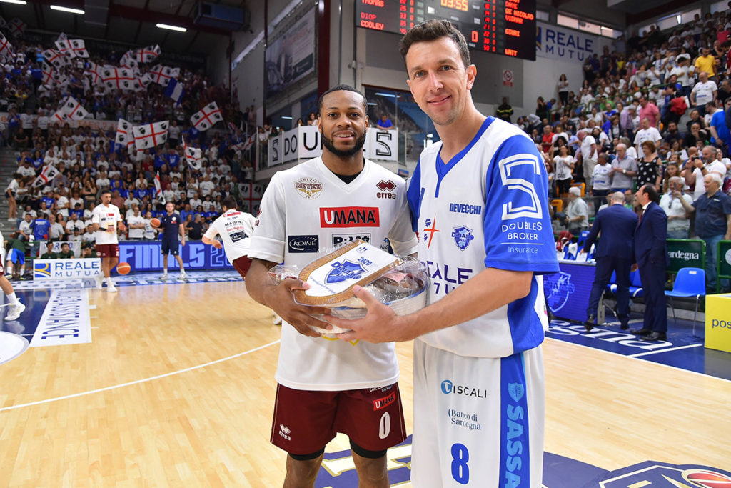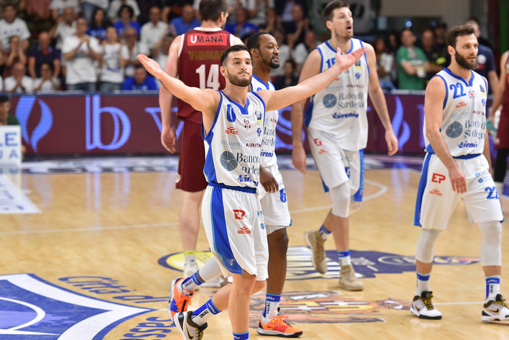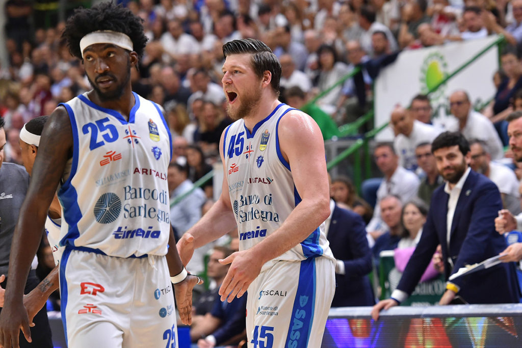 La Dinamo cercava di scappare già nella seconda metà della prima frazione. Con McGee partito in quintetto, Cooley dominante e, finalmente in questa finale, Thomas e Pierre su ottimi livelli, il Banco si portava sul 17-8 a 2’33” dalla prima sirena. Una folata di Tonut ricuciva in parte lo strappo, ma Smith e Cooley chiudevano il periodo sul 23-16 biancoblù.