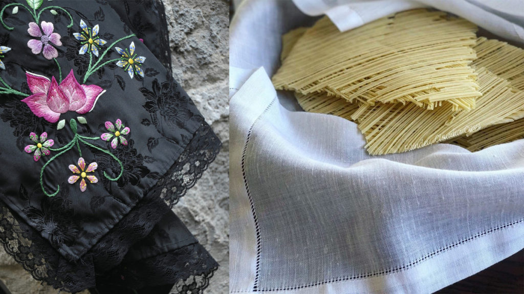 Nel percorso di questa particolare edizione di “Arti-Janas” non poteva mancare il ricamo, ben rappresentato dai lavori di Maria Grazia Saba, che nel corso degli anni ha approfondito le varie fasi di lavorazione del costume tradizionale sardo, partecipando a diversi percorsi di apprendimento di sartoria e cucito, affinando le conoscenze e la sua tecnica di lavoro.