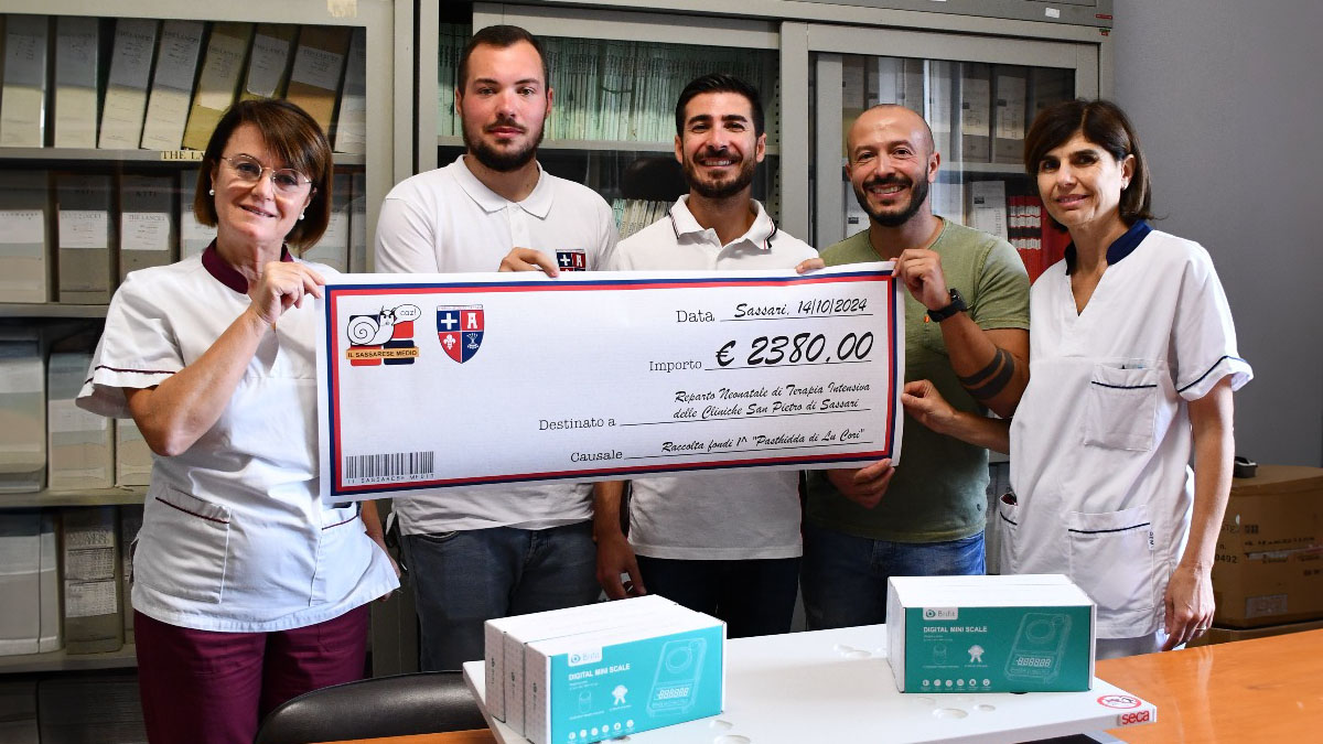 L’Asd Centro Storico Sassari e il Sassarese Medio donano sei bilance di precisione, un carrello, un’asciugatrice e una poltrona letto, beni che miglioreranno le cure per i piccoli pazienti del reparto neonatale