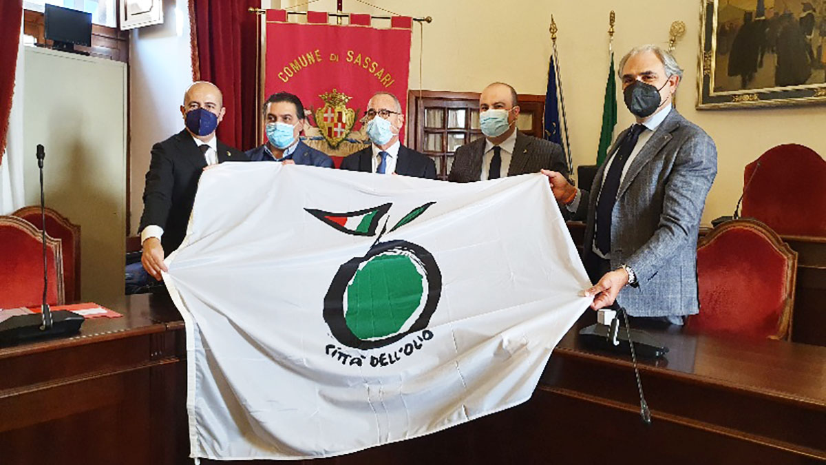 Questa mattina, 17 dicembre, nella sala del Consiglio a Palazzo Ducale si è tenuta la cerimonia di consegna della bandiera al sindaco di Sassari Nanni Campus e al delegato del sindaco per i rapporti con l’associazione e promotore dell’adesione, il consigliere Manuel Alivesi, da parte del presidente dell’associazione nazionale Città dell’Olio Michele Sonnessa, del vicepresidente nazionale Giovanni Antonio Sechi e della presidente regionale dell’associazione Maura Boi.