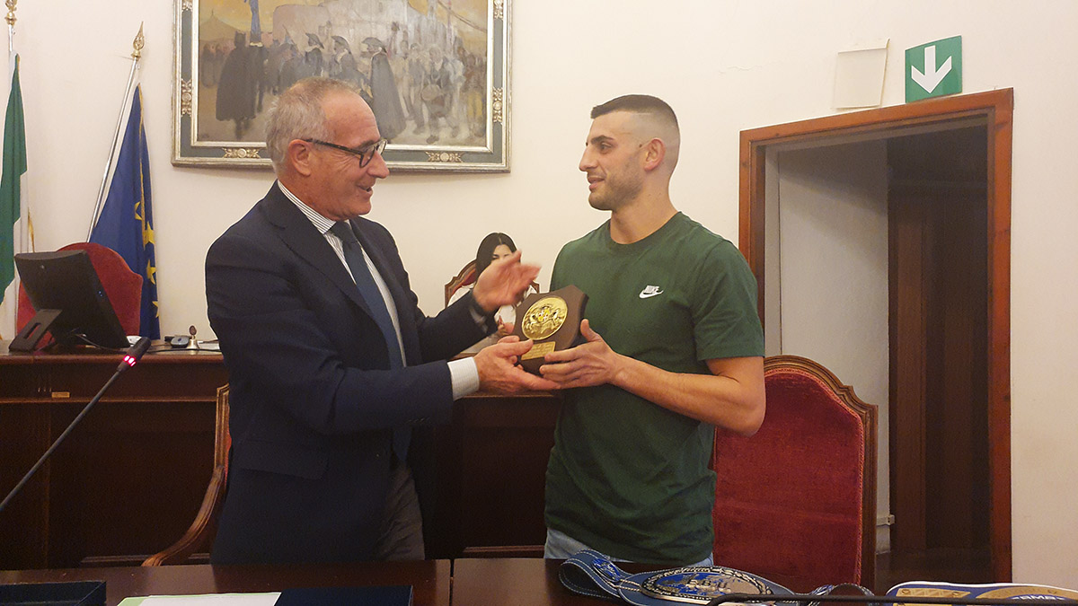Sassari. Oggi, giovedì 18 gennaio, in apertura dei lavori del Consiglio comunale, il sindaco Nanni Campus ha consegnato una targa al pugile Cristian Zara. Il dono, a nome di tutta la città, vuole essere un riconoscimento della straordinaria performance dell’atleta, nuovo campione europeo dei pesi gallo.