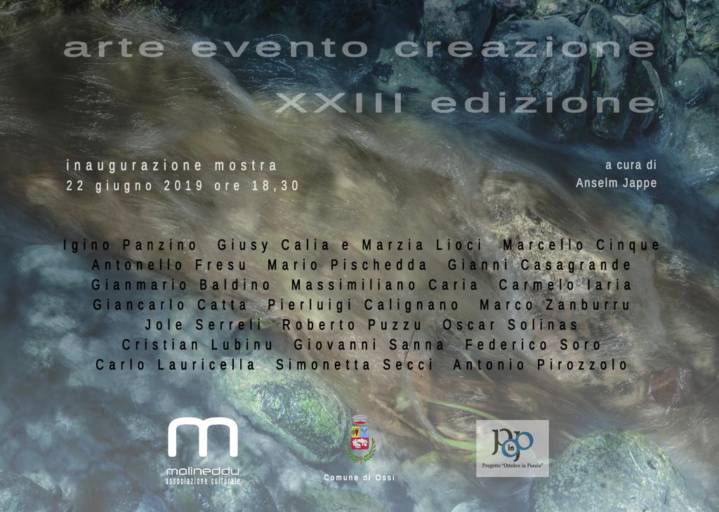 Sabato 22 giugno, ore 18:30, inaugura la XXIII edizione di Arte Evento Creazione. La mostra collettiva di arte contemporanea che ogni anno si svolge a Molineddu nella tenuta di Bruno Petretto, artista e fautore di un parco artistico a cielo aperto nelle campagne di Ossi (SS) tra l’imponente bastione di Chighizzu e il torrione di Sa rocca entosa.