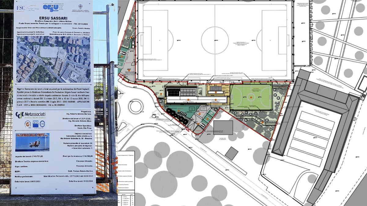 A seguito dell’adeguamento al prezzario regionale l’importo contrattuale è stato rimodulato in € 865.363,65. Nel corso dell’estate si è proceduto all’apertura del cantiere e la conclusione dell’opera è stata stimata in 270 giorni naturali e consecutivi, pertanto entro 31 marzo 2024 salvo imprevisti. Come stabilito da un accordo con il Comune di Sassari nell’atto di cessione dell’immobile, l’Ersu realizzerà le strutture complementari necessarie per l’utilizzo del campo di calcio comunale di Viale Adua dedicato alle competizioni di Prima categoria. In particolare, saranno realizzati gli spogliatoi, la biglietteria e la club house; verrà riposizionata la tribuna e saranno realizzati dei nuovi bagni dedicati al pubblico, oltre alla sistemazione delle parti esterne. Infine, verrà realizzato un nuovo campo di calcio a 5.