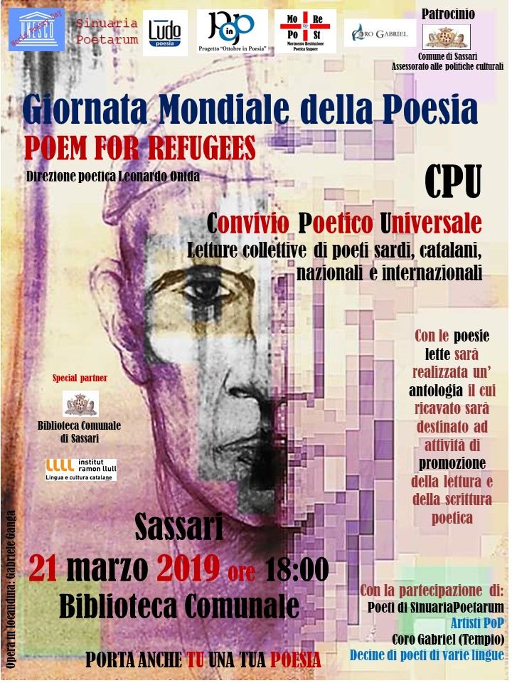 Come ogni anno a partire dal 2008, anche nel 2019 Sassari darà il suo contributo all’importante evento ideato dall’Unesco, la Giornata Mondiale della Poesia, grazie all’associazione POP: Progetto OTTOBREinPOESIA in collaborazione con Sinuaria Poetarum, il Coro Gabriel di Tempio, il patrocinio del Comune di Sassari – Assessorato alle politiche Culturali.