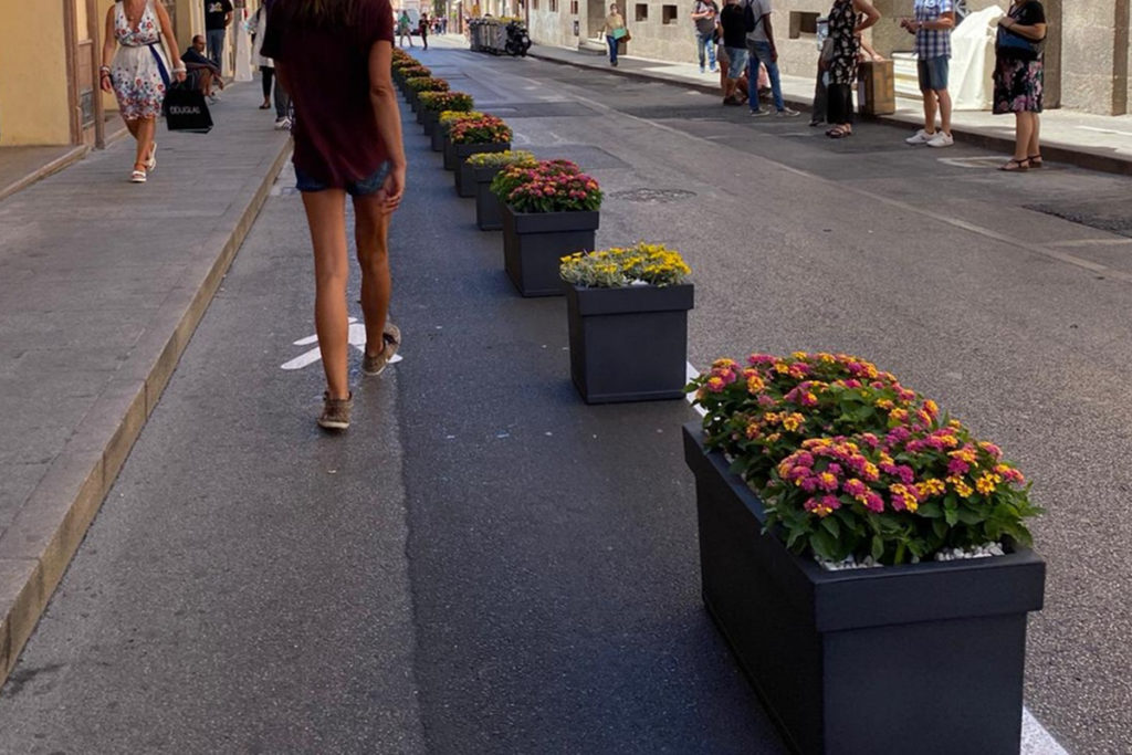 Proseguono le modifiche al traffico nel cuore della città. Da oggi in via Brigata Sassari sono presenti alcune fioriere che delimitano un tratto di strada riservato esclusivamente ai pedoni. Contestualmente nella stessa area è già in vigore il limite per auto e moto di massimo 30 chilometri orari. Una velocità che consente di far convivere con maggior sicurezza il traffico veicolare con il flusso pedonale. Una decisione presa dall’Amministrazione comunale che riduce ulteriormente i rischi di assembramenti, ampliando gli spazi dove poter camminare, permette a chi attende di entrare negli uffici postali di farlo senza il rischio di essere investito e allo stesso tempo abbellisce la zona, con fiori colorati.