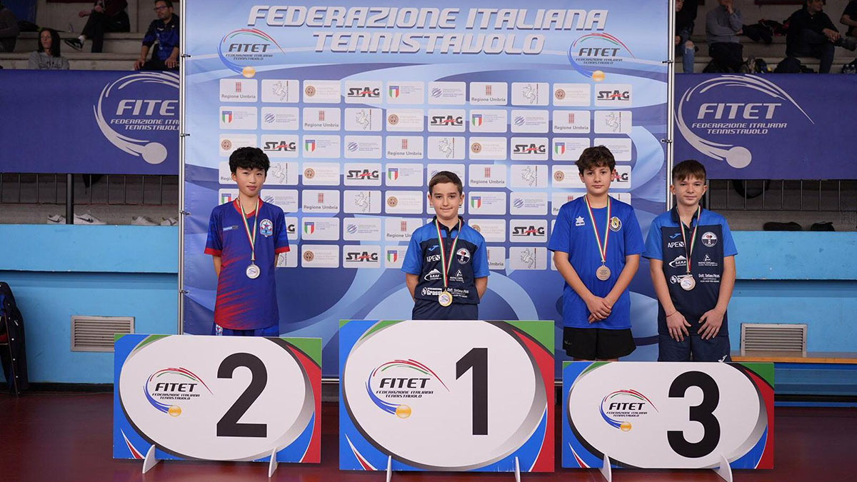 Sul gradino più alto del podio è salito Federico Casula nella categoria Under 13 di fascia B. Nella fase a eliminazione diretta l’atleta sassarese ha superato, nell’ordine, Samuele Quaglia, Alessandro Chellini, Giovanni Cesaretti per 3-2 in semifinale e con lo stesso punteggio Zhou Huan Jing, nonostante l’avversario sia più in alto nel ranking di ben 25 posizioni. Nella stessa categoria e tabellone Edoardo Eremita ha ottenuto il bronzo perché si è fermato in semifinale, sconfitto da Zhou Huan Jing.