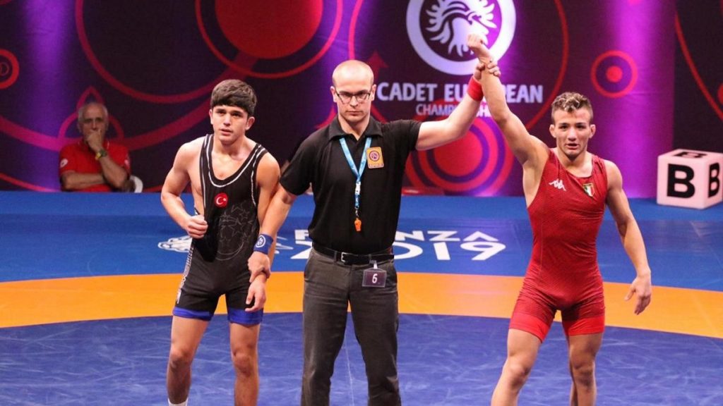 Il pubblico del Pala Cattani e i tifosi da casa collegati sul sito della UWW per la diretta streaming hanno assistito ad una finale al cardiopalma, ma sempre tenuta sotto controllo da un’impeccabile prestazione di Simone Piroddu che si è imposto sul turco Muhammet Karavus con il punteggio di 5 a 0, conquistando così la medaglia d’oro e il titolo di Campione Europeo cadetti di lotta stile libero nella categoria 55Kg.