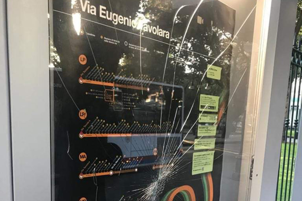 Non si placa l’azione vandalica ai danni delle nuove pensiline installate in città dall’Azienda Trasporti Pubblici di Sassari. Ancora una volta sono state assaltate e danneggiati i cristalli delle strutture coperte per l’attesa dei mezzi pubblici in via Tavolara. Sempre crescente l’inciviltà e l’incuria nonostante i continui sforzi che l’azienda sta compiendo, giorno dopo giorno, con impiego di ingenti risorse non solo economiche per rendere decorosi i luoghi di sosta dei bus, attraverso l’installazione di nuove pensiline e la ristrutturazione delle esistenti, oltre alla riqualificazione delle paline gialle di vecchia generazione, che proprio in questi giorni stanno via via vivendo un vero e proprio restyling, in linea con la nuova immagine aziendale.