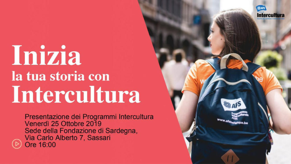 “Partire con Intercultura mi ha cambiato la vita!”. A dirlo, sono gli oltre 70.000 studenti che in 64 anni di attività hanno partecipato a un programma scolastico internazionale di Intercultura, tra cui si annoverano personaggi come Luca Parmitano, Samantha Cristoforetti, Antonio Scurati, Maria Concetta Mattei, Marco Balich, Luca Barilla e tanti altri. In tutta Italia Intercultura organizza oltre 200 appuntamenti per presentare i programmi all’estero e anche a Sassari i volontari dell’Associazione hanno previsto un incontro informativo aperto a studenti e genitori. L’appuntamento è per le 16 di venerdì 25 ottobre nella sala convegni della Fondazione di Sardegna, in via Carlo Alberto 7, dove sarà possibile ricevere informazioni e suggerimenti utili sul concorso e sulle borse di studio.