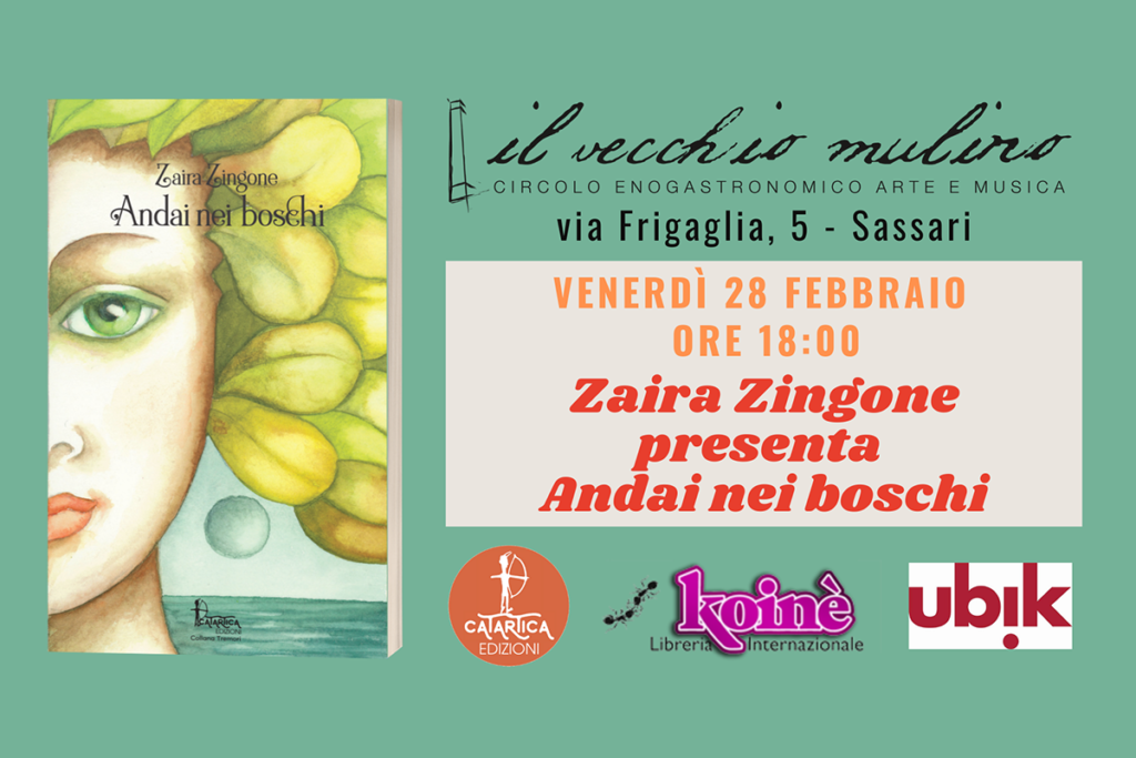 Venerdì 28 febbraio alle ore 18:00 presso Il Vecchio Mulino in Via Frigaglia, 5 a Sassari, si terrà la presentazione del libro di Zaira Zingone “Andai nei boschi”, edito da Catartica Edizioni, dialoga con l’autrice Francesca Arca. Ingresso libero.