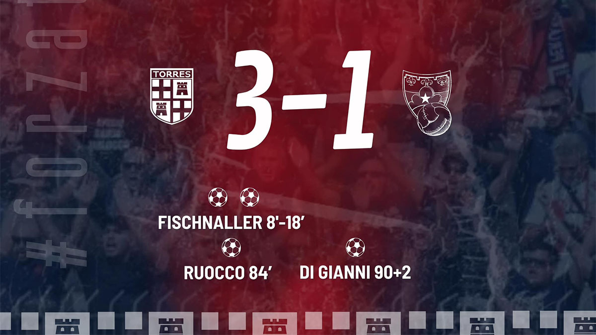 Tripudio rossoblù al “Vanni Sanna”: gara dominata, Torres devastante. La risolvono Fishnaller (doppietta) e Ruocco, – il 3-1 lo segna allo scadere del secondo tempo Di Gianni – acuti di una orchestra che esegue alla perfezione lo spartito scritto da mister Greco e accompagnato magistralmente dall’urlo della tifoseria sassarese sugli spalti. La corsa continua: prossimo appuntamento in calendario, in casa della Cenerentola Fermo.