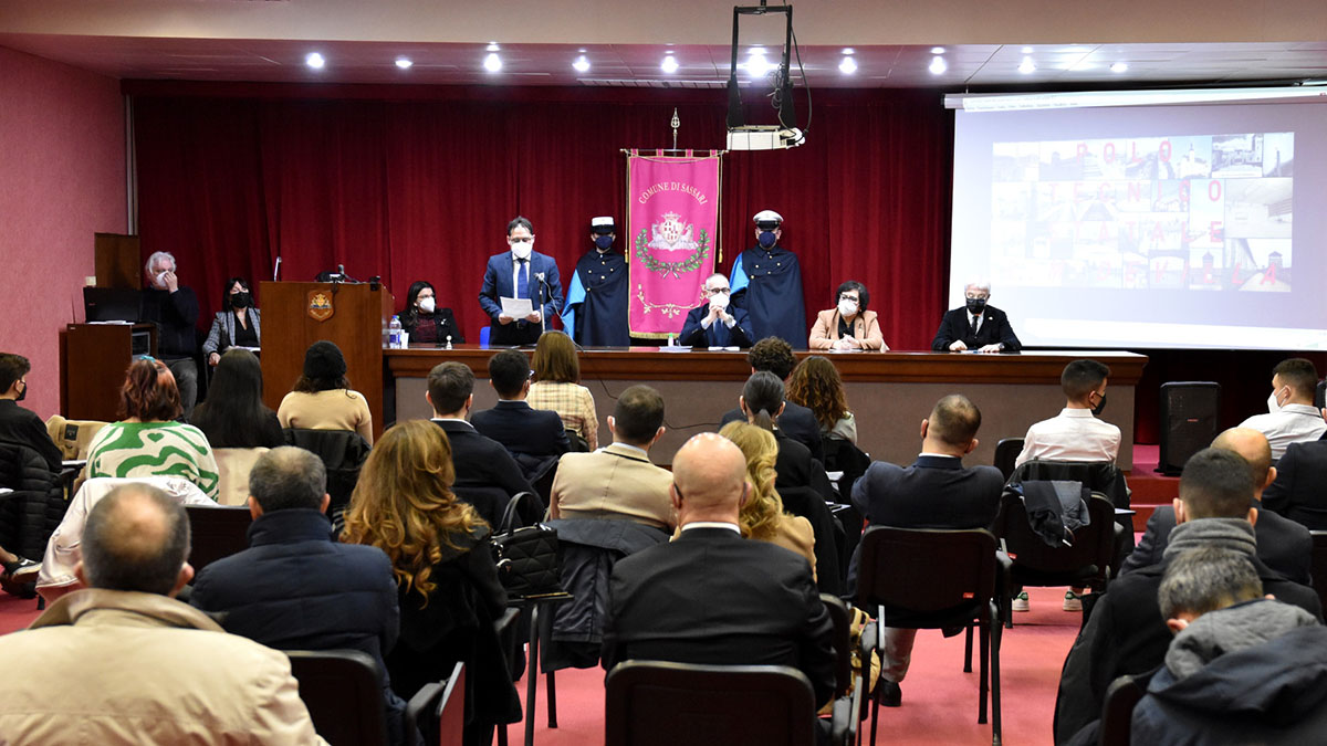 Il presidente del Consiglio Maurilio Murru, nell’aprire la seduta, ha dichiarato: «L’inesorabile scorrere del tempo ci priva anno dopo anno dei testimoni e delle testimonianze dirette di quella tragedia, riversando su di noi il dovere del racconto. E allora il legame con le scuole è la naturale congiunzione. Questi anni di pandemia ci hanno tolto tanto, ma una cosa non c’è stata portata via ed è la speranza. Oggi siamo noi amministratori che abbiamo bisogno di sapere che voi studenti ci siete, e avete a cuore una storia che a voi sembrerà lontana, ma che avete conosciuto e sapete già raccontare, una storia fatta di sguardi, di abbracci, di lacrime, di distacchi, di paura, di ricordi. Ed è questo lo spirito con il quale oggi celebriamo questa ricorrenza, ringraziandovi, fin da subito del vostro prezioso contributo».