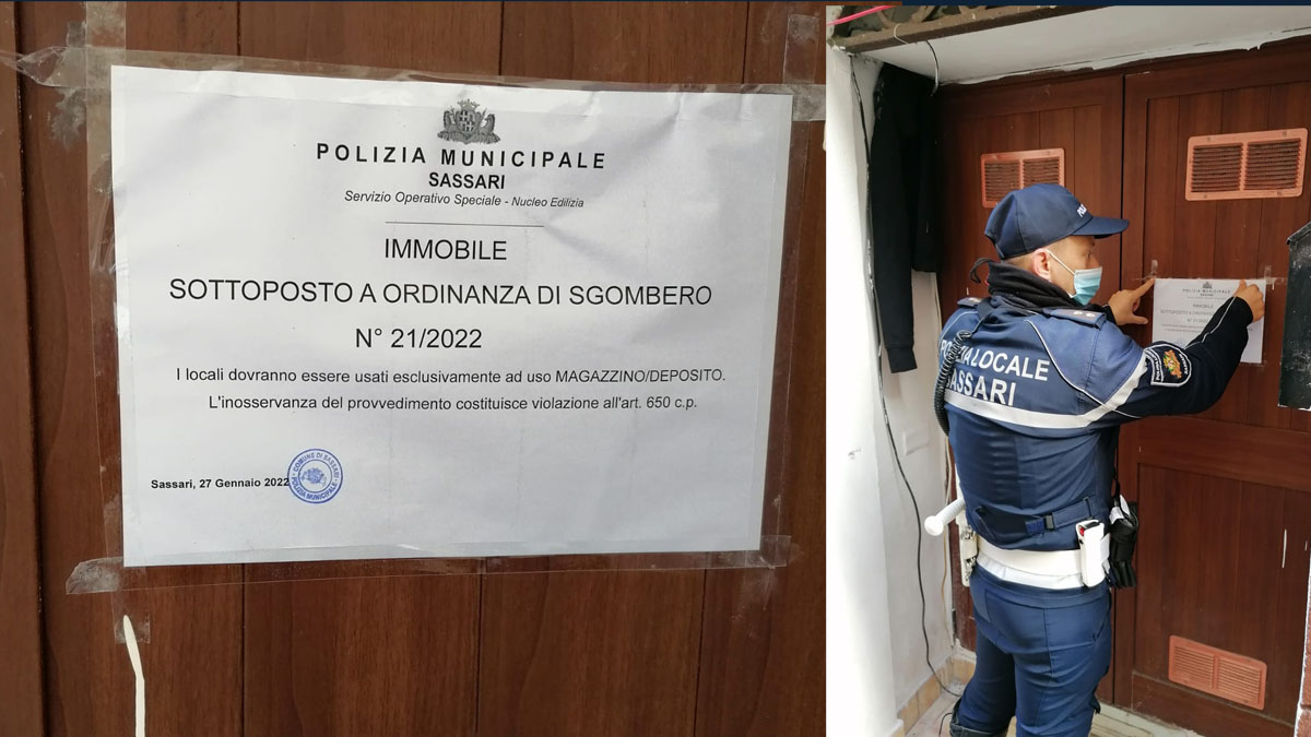 Sassari. Questa mattina la Polizia locale ha dato esecuzione a un’ordinanza sindacale che imponeva lo sgombero di un immobile accatastato come magazzino ma usato come abitazione. Si tratta del primo provvedimento di questo genere adottato in città e frutto di quella mappatura del centro storico realizzata nel 2021 dall’Amministrazione comunale proprio per scovare le situazioni illecite e riportare decoro e legalità nel cuore di Sassari.