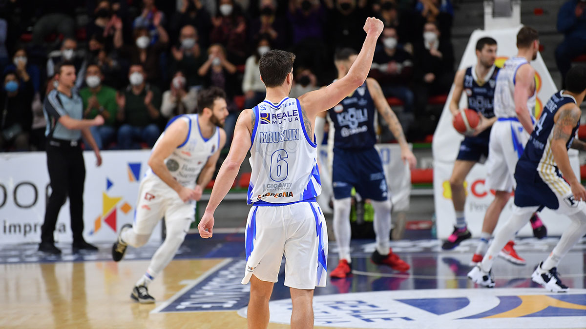 Kruslin commenta così la straordinaria prestazione: “Sono felice, venivamo da due partite molto difficili perse con Tortona e Reggio Emilia, è un successo fondamentale in chiave classifica e per raggiungere l’obiettivo playoff. È chiaro che nel primo tempo non siamo stati all’altezza difensivamente ma nel secondo abbiamo difesa benissimo, aiutandoci e producendo un grande sforzo per tenerli a 25 punti segnati. Miro lo conosco da una vita, non è facile inserirsi in un nuovo sistema quando la stagione è a 3/4, dobbiamo essere bravi noi a coinvolgerlo nella maniera giusta, il giocatore non si discute, non significa che lui è stato qui 2 anni arriva ed è tutto come prima, bisogna avere pazienza e sacrificarsi, sono sicuro che sarà un’arma per noi da qui alla fine. Io non sono giocatore da 19 punti, gioco per difendere e aiutare i miei compagni a rendere al massimo, sono contento ma lo sono di più per il 2° tempo che abbiamo fatto che ci ha permesso di conquistare una vittoria mentalmente fondamentale”.