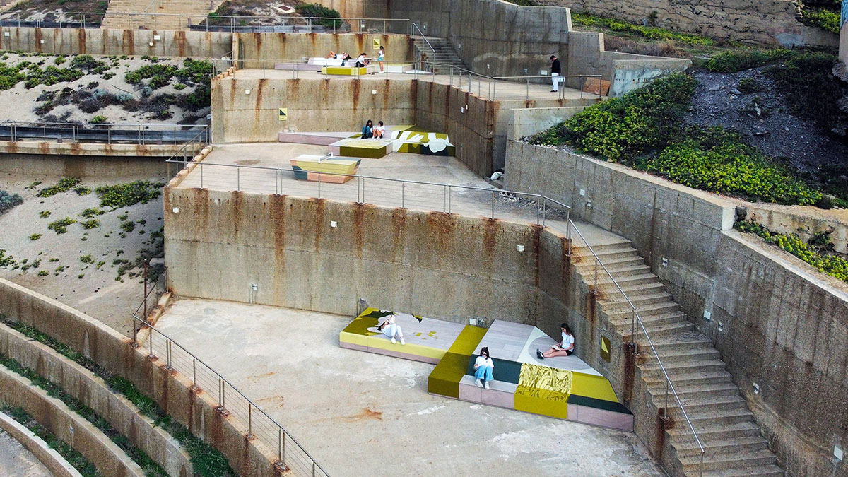 In continuità con la Scala, spazio pubblico culturale dedicato alla musica, il cinema e il teatro inaugurato nel 2022, e il Fronte Mare, un’area di oltre 500 metri destinata al gioco e agli eventi ricreativi e sportivi restituita alla comunità nel 2023, questo terzo atto, destinato alla sosta e alla lettura, è vincitore per il terzo anno consecutivo del premio nazionale “Creative Living Lab”, promosso dalla Direzione Generale Creatività Contemporanea del Ministero della Cultura, che mira a promuovere processi di rigenerazione dei territori periferici attraverso la realizzazione di microprogetti innovativi e di qualità, in ambito culturale e creativo, orientati alla trasformazione e al riutilizzo di spazi interstiziali, aree o edifici abbandonati o dismessi e zone di verde non curate.