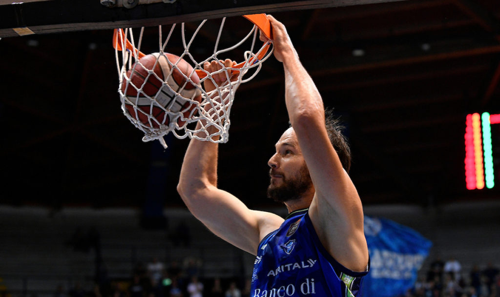 Dinamo Banco di Sardegna: Spissu 12 (3/5, 2/3), Mclean 4, Bilan 20 (10/11 da 2), Bucarelli, Devecchi ne, Evans 16 (6/6, 1/2), Magro ne, Pierre 10 (2/3, 2/5), Gentile 8 (2/3, 1/2), Vitali 10 (2/5 da 3, 4/4 tl), Jerrells 7 (1/4, 1/3). All. Gianmarco Pozzecco