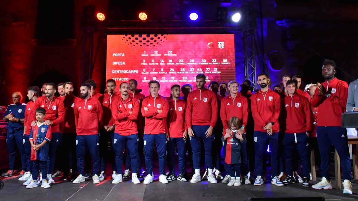 Si parte con il rullare dei tamburi dei Candelieri e l’Intergremio sul palco. E chiaramente, in tema di presentazioni, a presentarsi è anche la nuova maglia da gioco. La Torre e la croce, simboli della città, sono elementi caratterizzanti della maglia “casalinga”, la prima maglia. I colori sono quelli del 1903: il rosso e il blu. Il pantaloncino è bicolore, a creare un vero e proprio “muro rossoblù”. Sul palco spazio anche alle altre maglie e a quelle dei portieri. Produzione griffata FootureLab (già compagno di viaggio nelle ultime due stagioni), fattura ad alta qualità made in Italy.
