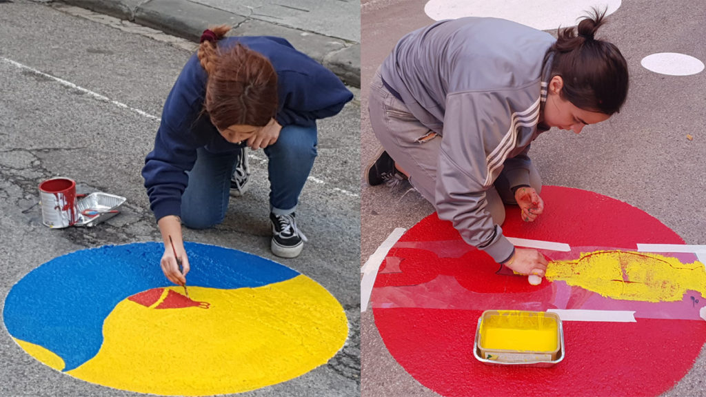 “L’arte scende in strada – Dipingiamo la Città” è ora realtà. Ieri Davide Manca, Carlotta Tola, Alessandra Catta, Luisa Pistidda, Gabriele Orotelli, Ilaria Pisu, Taras Halaburda e Alessia Atzori hanno cominciato a “trasferire” sui bianchi cerchi realizzati sull’asfalto di via Cavour le idee presentate in forma di bozzetto al concorso di idee “Tradizioni marinaresche… e non solo nei luoghi del nord dell’Isola”.