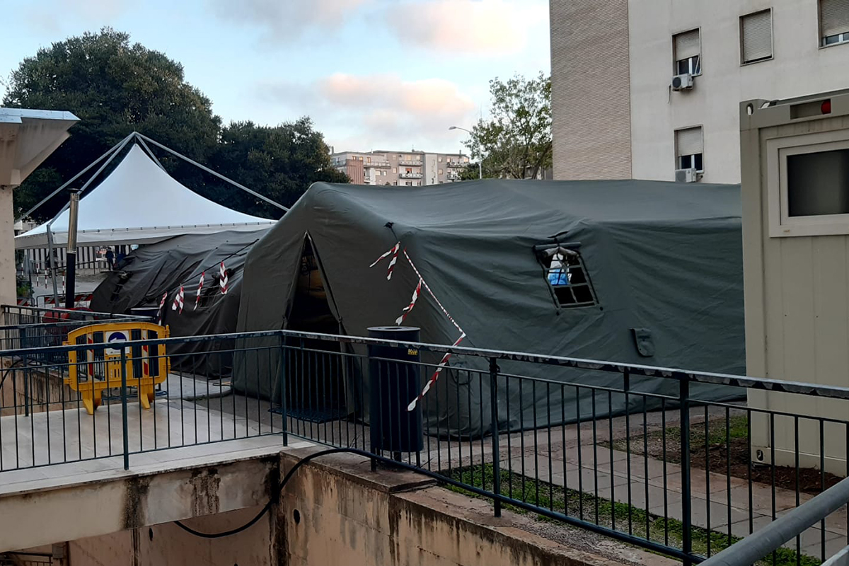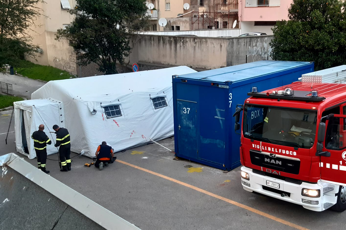 Tre tende, due del Comando provinciale dei Vigili del fuoco di Sassari, e una del 152esimo Brigata Sassari che serviranno a ospitare i pazienti Covid in arrivo al Pronto soccorso e in attesa di ricovero nei reparti dedicati. Non un ospedale da campo ma un supporto temporaneo per la struttura di emergenza-urgenza dell’Aou di Sassari