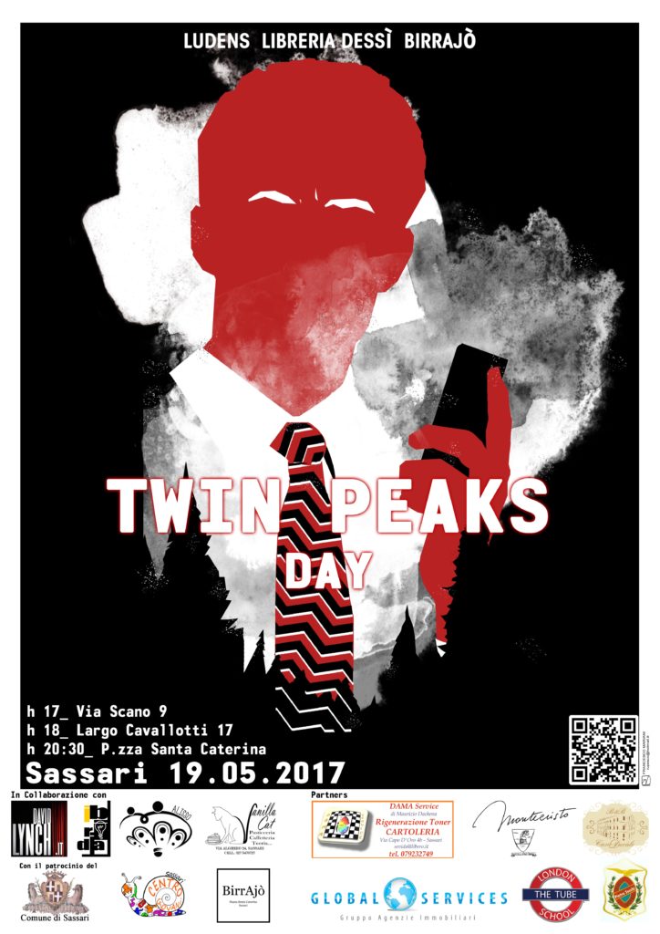 L’Associazione Culturale Ludens insieme alla Libreria Dessì, il BirrAjò, le associazioni Ibridia e Alisso, il Centro Giovani, con il Patrocinio del Comune di Sassari presentano: Twin Peaks Day, una serie di appuntamenti dedicati alla serie tv e ai loro creatori.