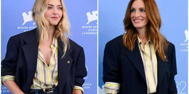 (Adnkronos) – Amanda Seyfried è sbarcata al Lido di Venezia con un look davvero inaspettato. Jeans scuro a vita alta, cintura con fibbia dorata, camicia a righe con maniche arrotolate sopra la giacca blu. Lo stesso identico outfit utilizzato da Julia Roberts qualche giorno fa, sempre alla Mostra del cinema di Venezia.