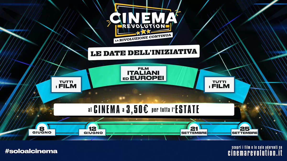 Dal 13 giugno al 20 settembre torna “Cinema Revolution”, la campagna promossa dal Ministero della Cultura che punta a incentivare la visione di film sul grande schermo durante i mesi estivi. L’iniziativa prevede un prezzo speciale di 3,50 euro per i biglietti dei film italiani ed europei, con il contributo diretto del MiC che copre la parte restante del costo.