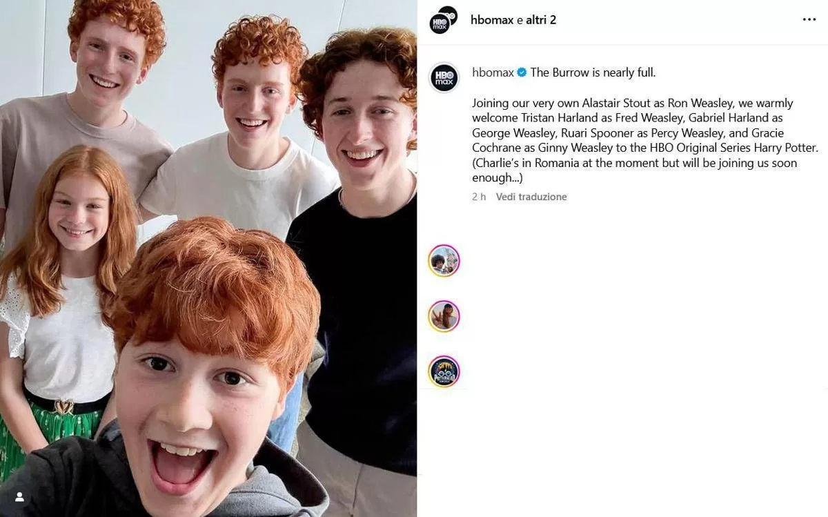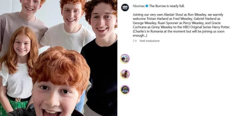 (Adnkronos) – L’attesa per la nuova serie TV Hbo Original dedicata a ‘Harry Potter’ si arricchisce di nuovi dettagli con l’annuncio di quattro membri chiave del cast che andranno a comporre l’iconica famiglia Weasley. La produzione ha svelato i nomi degli attori che presteranno il volto ad alcuni dei personaggi più amati della saga: Tristan Harland e Gabriele Harland interpreteranno i gemelli Weasley, Fred e George; Ruari Spooner nel ruolo del fratello Percy Weasley e Gracie Cochrane nei panni della più giovane della famiglia, Ginny Weasley.