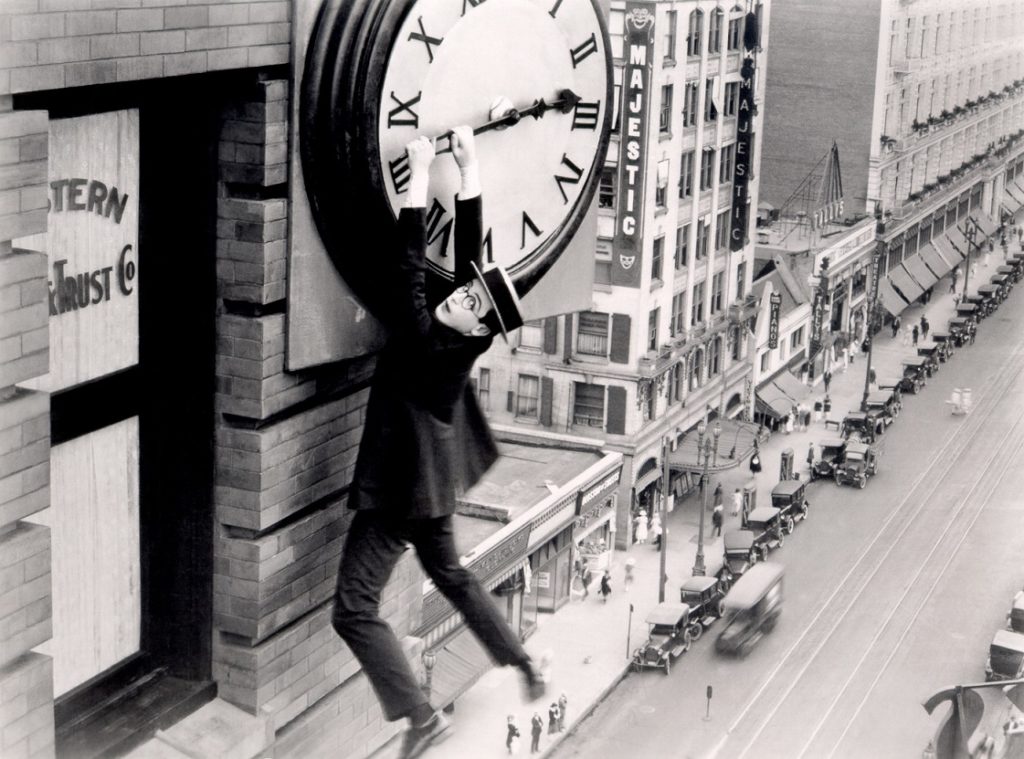 La scena in cui Harold Lloyd si aggrappa alle lancette di un orologio, sospeso nel vuoto al di sopra di una strada trafficata, è uno dei primi geniali effetti speciali della storia del cinema che ha reso “Safety Last” (Preferisco l’ascensore) tra i più celebri film in assoluto per il genere comico muto.