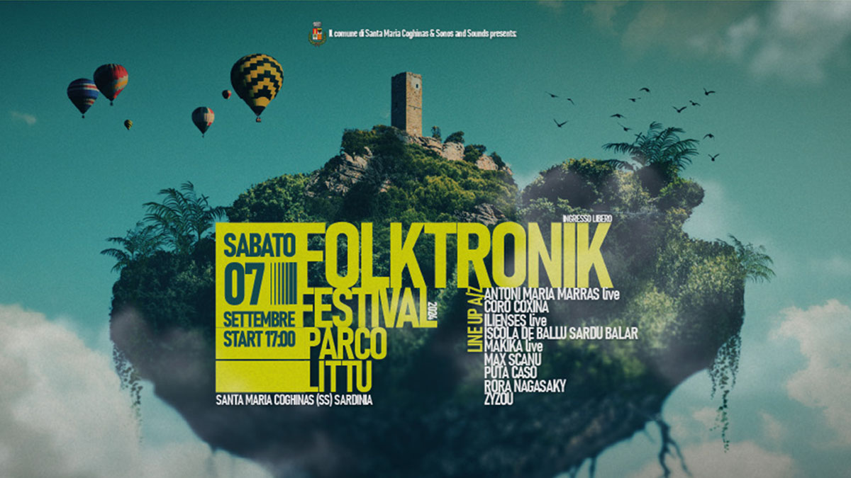 Si terrà sabato 7 settembre, con inizio alle 17, il festival Folktronik, nella magica cornice del Parco Littu, di Santa Maria Coghinas immersi tra i profumi della macchia mediterranea, con una vista mozzafiato sull’imponente Monti Ruju e sul Castello dei Doria.