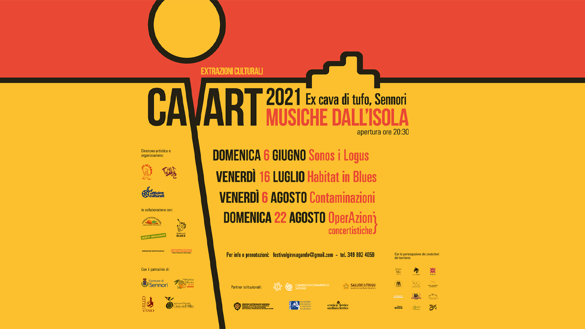 Domenica 6 giugno alle ore 20:30 si apre ufficialmente la terza edizione di Cavart-Extrazioni Culturali 2021 dal titolo Musiche dall’Isola. Il Comune di Sennori, con la direzione artistica dell’associazione Girovagando, di Theatre en vol e della neonata associazione officine culturali propone per la ripartenza della cultura e dello spettacolo dal vivo quattro appuntamenti tra giugno e agosto dedicati alle sonorità dell’isola e alla valorizzazione del territorio e delle sue eccellenze. Nella splendida e suggestiva cornice dell’Ex Cava di tufo di Sennori – trasformata per l’occasione dal progetto Habitat Immaginari in un salotto colorato e sostenibile – Cavart presenta un viaggio musicale che spazia dai tradizionali cori sardi al blues e alla musica classica, fino ad arrivare ai territori della sperimentazione indie. La Ex Cava si trasforma in un luogo inedito per la cultura e la sperimentazione con protagonisti alcuni tra i più importanti esponenti della scena musicale isolana.