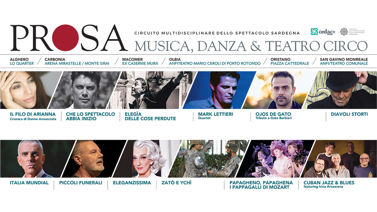 Arte e cultura sotto le stelle dell’Isola con il ricco e interessante programma della Stagione di Prosa Musica Danza & Teatro Circo organizzata dal CeDAC / Circuito Multidisciplinare dello Spettacolo dal Vivo in Sardegna per l’Estate 2021: dodici titoli in cartellone per ventiquattro appuntamenti tra luglio e settembre, tra raffinate pièces, recitals e concerti, performances spettacolari e progetti site specific in sei città con i grandi nomi della scena nazionale e internazionale.
