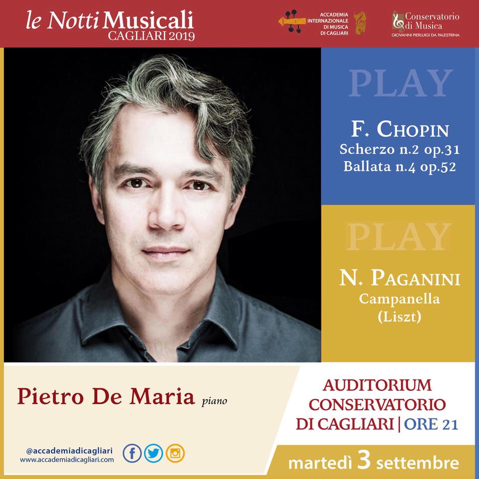 Pietro De Maria è Accademico di Santa Cecilia e insegna al Mozarteum di Salisburgo. È nel team di docenti del progetto La Scuola di Maria Tipo organizzato dall’Accademia di Musica di Pinerolo.