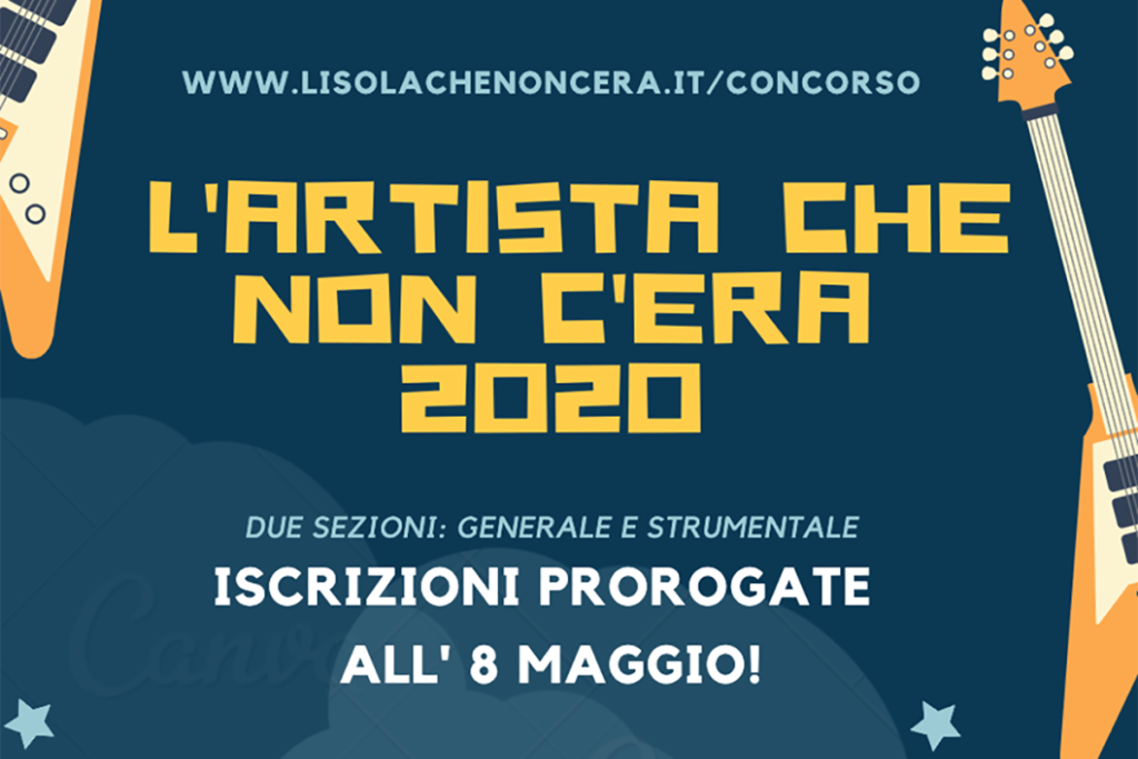 L’Artista Che Non C’Era, storico Premio giunto alla sua 17ª edizione, tiene conto delle molte difficoltà riscontrate in queste ultime settimane e proroga fino a Venerdì 8 Maggio 2020 le iscrizioni.