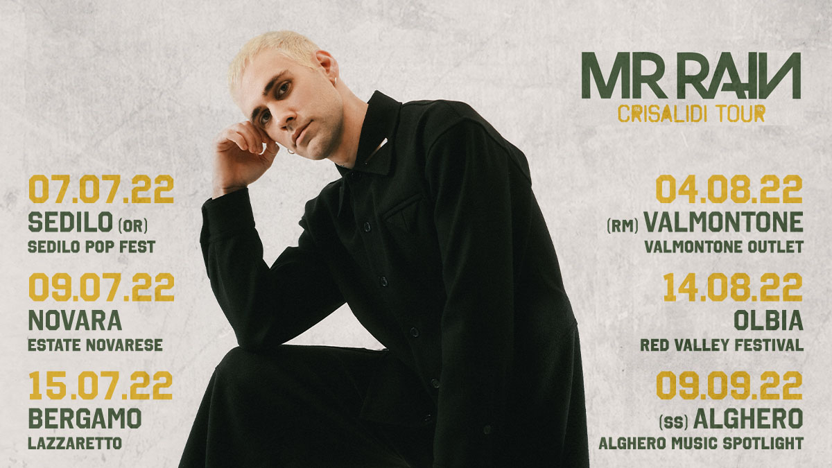 Il rapper e produttore italiano Mr. Rain, da 12 dischi di platino e hit di successo come “I Grandi non Piangono” e “Fiori di Chernobyl”, annuncia le date estive del suo Crisalidi Tour, prodotto e distribuito da Vivo Concerti.