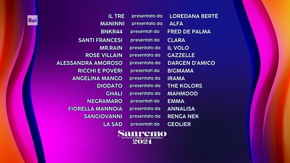 I 15 artisti (in ordine di uscita) che canteranno stasera