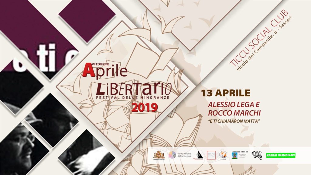 Sabato 13 Aprile, nello splendido scorcio di Vicolo del Campanile a Sassari, al via la VII edizione di “Aprile Libertario” festival di studio e discussione, ideato da Heliogabalus e dedicato alle minoranze. Negli anni sono stati vari e tanti – gli ospiti prestigiosi – fra gli altri: Silvano Agosti, Cesare Basile, Paolo Pasi, Stefano Boni, Toni Zafra, Piero Cipriano. Il programma di quest’anno – dal 13 al 28 aprile – prevede incontri con lo scrittore Antonio Moresco, gli antropologi Andrea Staid e Matteo Meschiari, il conduttore radiofonico Ghighi di Paola (Battiti, Radio3), l’esperto gramsciano Massimo Lunardelli.