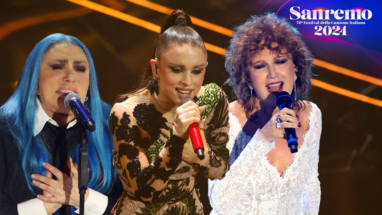 Poche le quote rosa in gara, sono solo 10 su 30: Angelina Mango, Alessandra Amoroso, Annalisa, BigMama, Clara, Emma, Fiorella Mannoia, Loredana Bertè, Rose Villain e Angela Brambati dei Ricchi e Poveri. Si risollevano i numeri con le cocò di Amadeus: Giorgia, Teresa Mannino e Lorella Cuccarini splendono sul palco dell’Ariston.