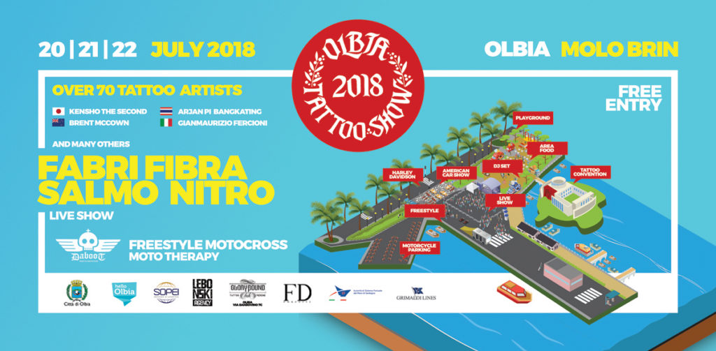 A Olbia dal 20 al 22 luglio si terrà l’evento cardine della stagione estiva olbiese: l’Olbia Tattoo Show tra cui spicca l’esibizione degli artisti rapper Fabri Fibra, Salmo e Nitro.
